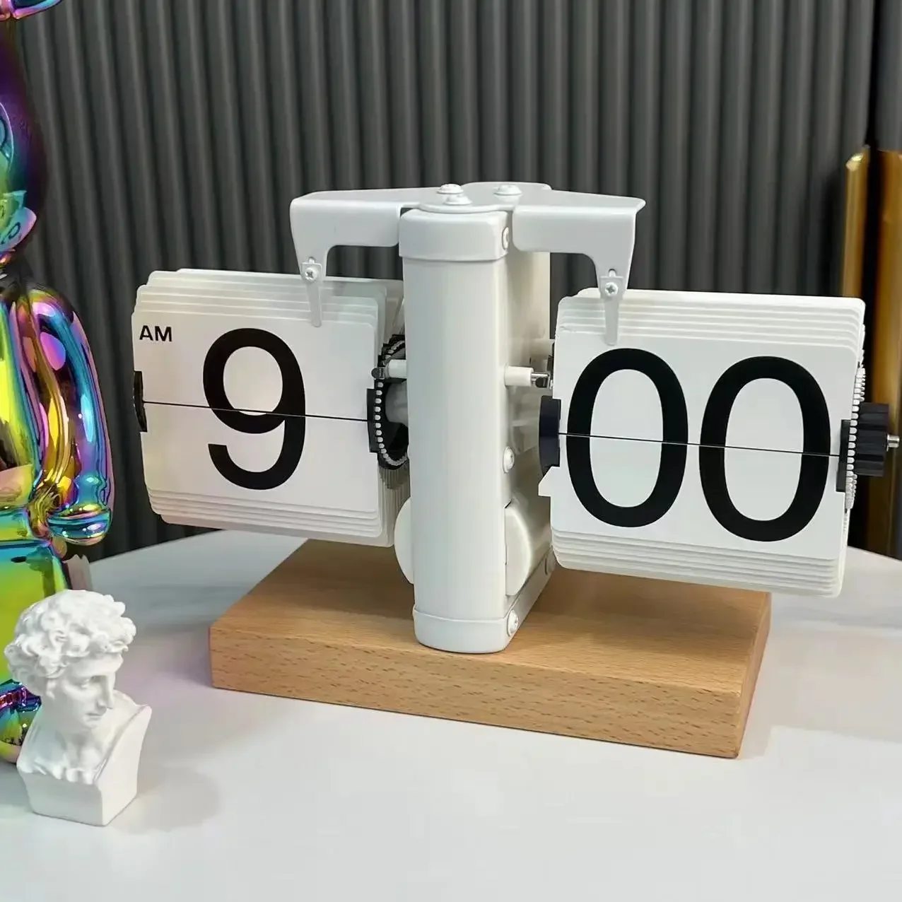 Flip Desk Clock,Retro Vintage Design Auto Flip Desk/Table Clock Large Number Battery Powered Internal Gear Operated Home Décor